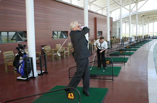大使在园区内的高尔夫球场挥杆试打