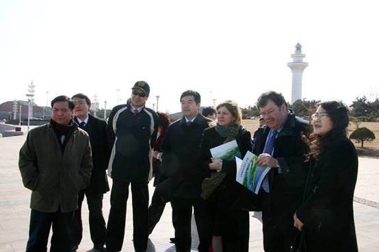 代表团在赵市长的带领下考察灯塔广场