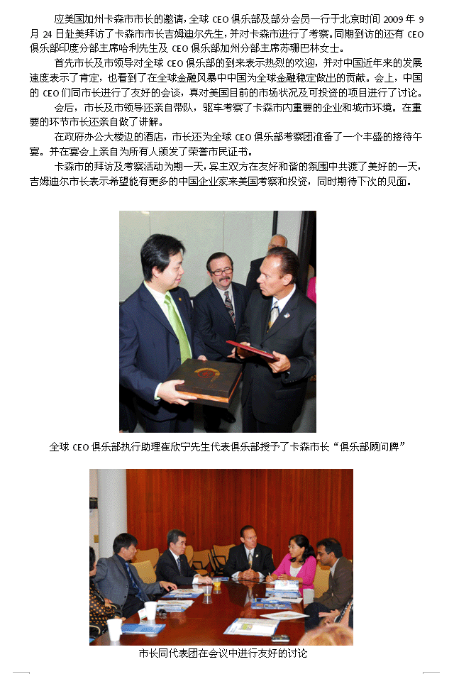 应卡森市邀请赴美考察