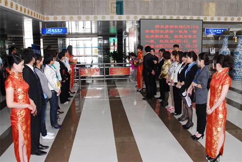 全球CEO俱乐部鄂尔多斯分部主席及分部工作人员在机场列队迎接 约瑟夫曼库索主席一行到来