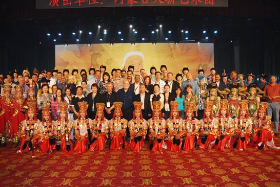 晚宴结束后全球CEO俱乐部来宾及七国大使在台前与演职人员合影留念