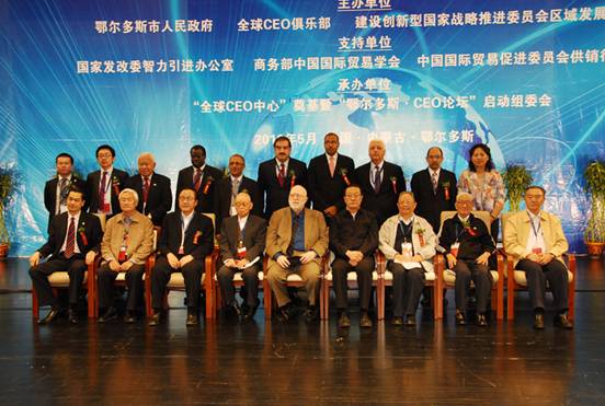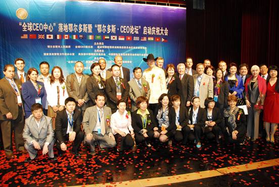 2010年5月26日,由鄂尔多斯市人民政府、全球CEO俱乐部和建设创新型国家战略推进委员会区域发展委员会等共同主办的CEO论坛活动在鄂尔多斯市国际会展中心举行。同时“全球CEO中心”项目在鄂尔多斯市落地。本次活动,受到了国家发改委、商务部中国国际贸易学会、中国国际贸易促进委员会供销行业委员会等,三家联合支持单位的鼎力支持。