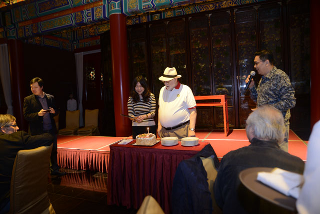 5月12日全球CEO俱乐部大中华区李京平主席,在北京檪园包下场地给曼库索主席举行中国的生日Party.生日晚宴上有精彩的中国戏剧表演,北京特色小吃及全聚德烤鸭,全球CEO俱乐部艺术大师张大华老师赠送曼库索主席自己的艺术作品。檪园工作人员给曼库索主席献上精美的生日蛋糕,来华的全体会员为曼库索主席一起唱生日歌。