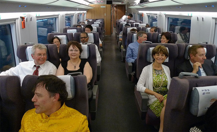 访问结束后,外国企业家还特意登上了京津高铁亲身的体验了一下350公里/小时的速度。