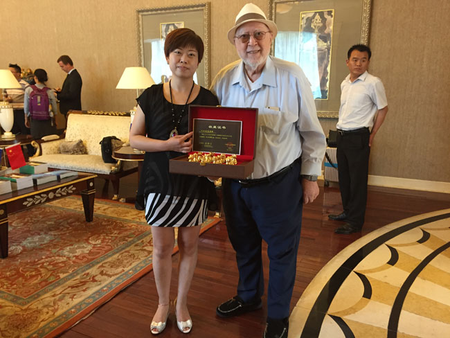 中建一局六分公司在年会现场赠送曼库索主席礼品